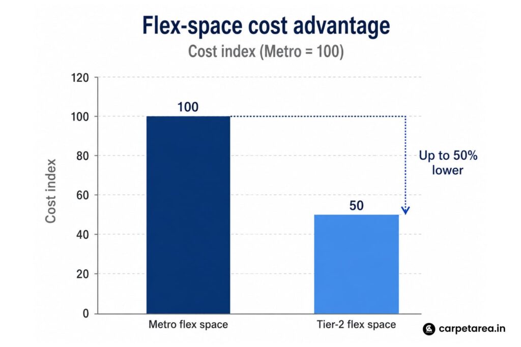 The commercial side of the story is becoming just as important. One of the old assumptions about smaller cities was that they could support residential growth but not serious office demand. That assumption is weakening. Economic Times reported that 17 smaller towns now house 575 co-working centres, and that flex spaces in Tier-2 cities can offer a cost advantage of up to 50 percent compared with metros. The same report said more than 200 companies have already established over 300 GCC bases across major Tier-2 cities. That is a meaningful signal because when office users move into smaller cities, housing, retail, and local services often move with them.