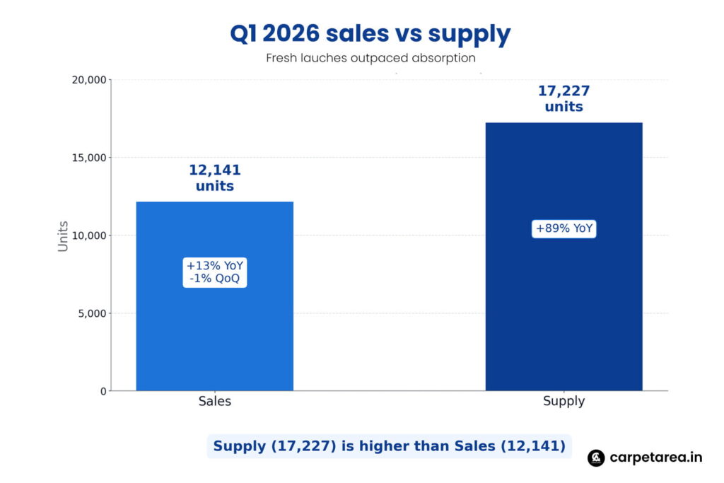 There is also a second layer to this story. A lot of fresh supply in Delhi-NCR has moved toward higher-ticket projects, especially in Gurugram and Noida. PropEquity data reported by Financial Express showed that in Q1 2026, Delhi-NCR recorded 12,141 housing sales, up 13 percent year on year, but down 1 percent quarter on quarter, while supply jumped 89 percent year on year to 17,227 units. The same report noted that Delhi-NCR saw more supply than several traditionally high-supply cities, but absorption remained weaker than Bengaluru because high-ticket launches affected sales. That matters because it means the market is active, but not every new launch is being absorbed with equal ease.